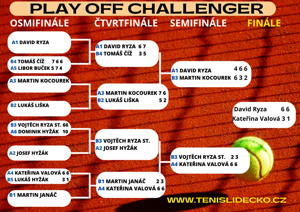 | 26.5.2023 | David Ryza | Martin Janáč | 6:4 | 3:6 | 6:0 | 2:1 |